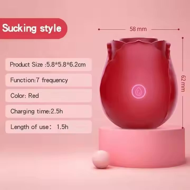 Rose- This beautiful clit sucking vibrator, holding 10 modes of intense air pulsation within its folds. Very easy to use, just place directly over clit or nipples for a pleasure like no other. The rose is fully waterproof, enjoy in showers and baths carefree. Vibrator is made with a silky silicone texture and rechargeable. Rose can play for up to 120 minutes when fully charged. This beautiful packaging includes Rose and charging cord.